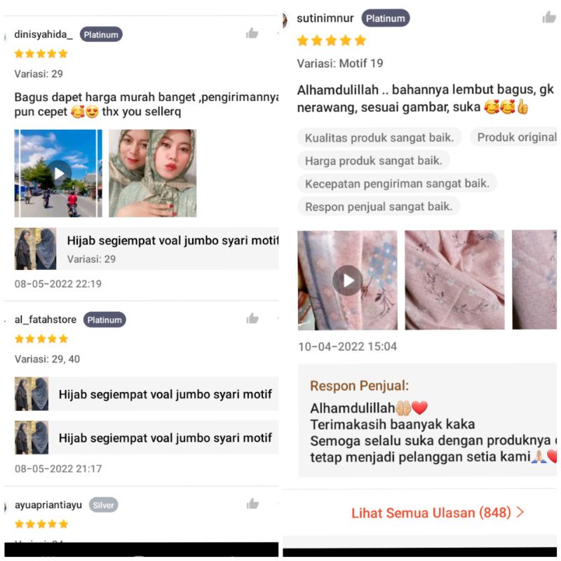 Kekurangan PART 1 Hijab segiempat voal jumbo syari motif