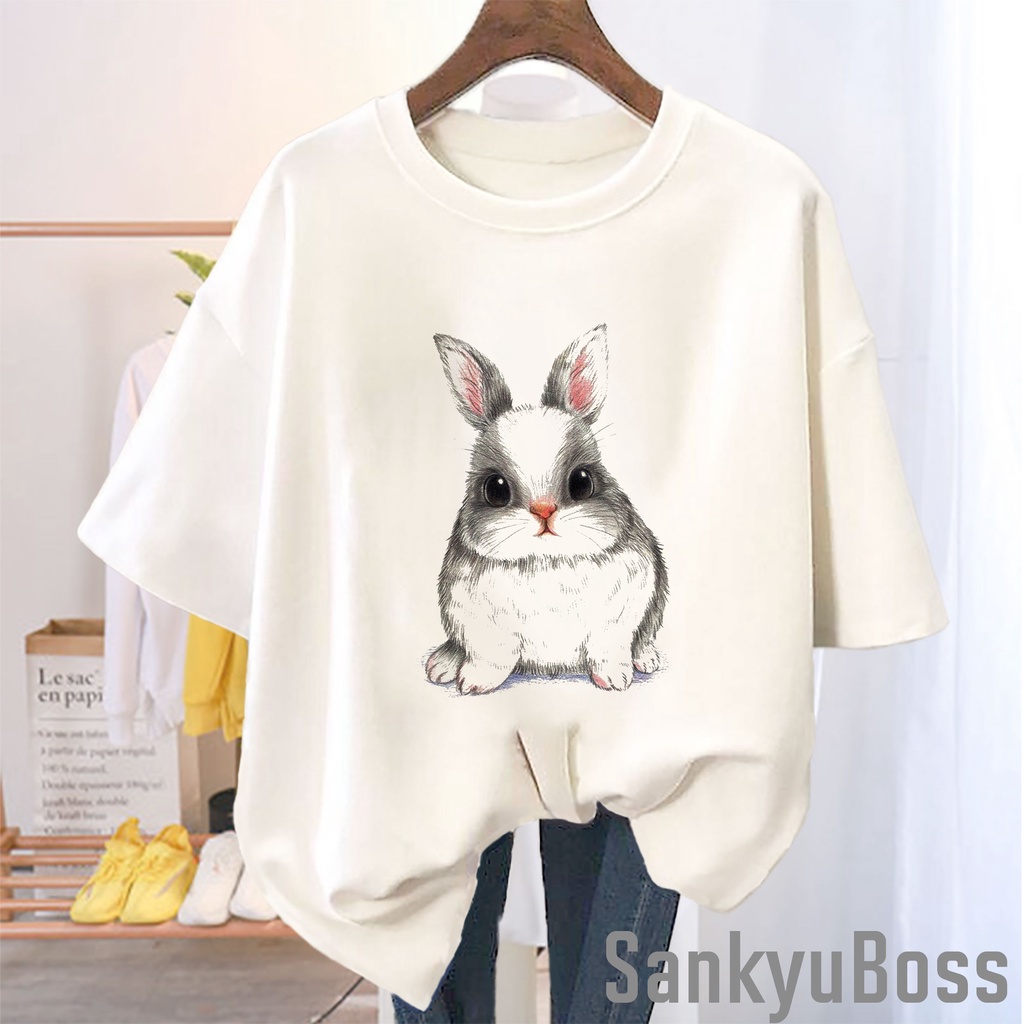 KAOS GAMBAR KELINCI ATASAN WANITA OOTD OVERSIZE HIJAB LENGAN PENDEK