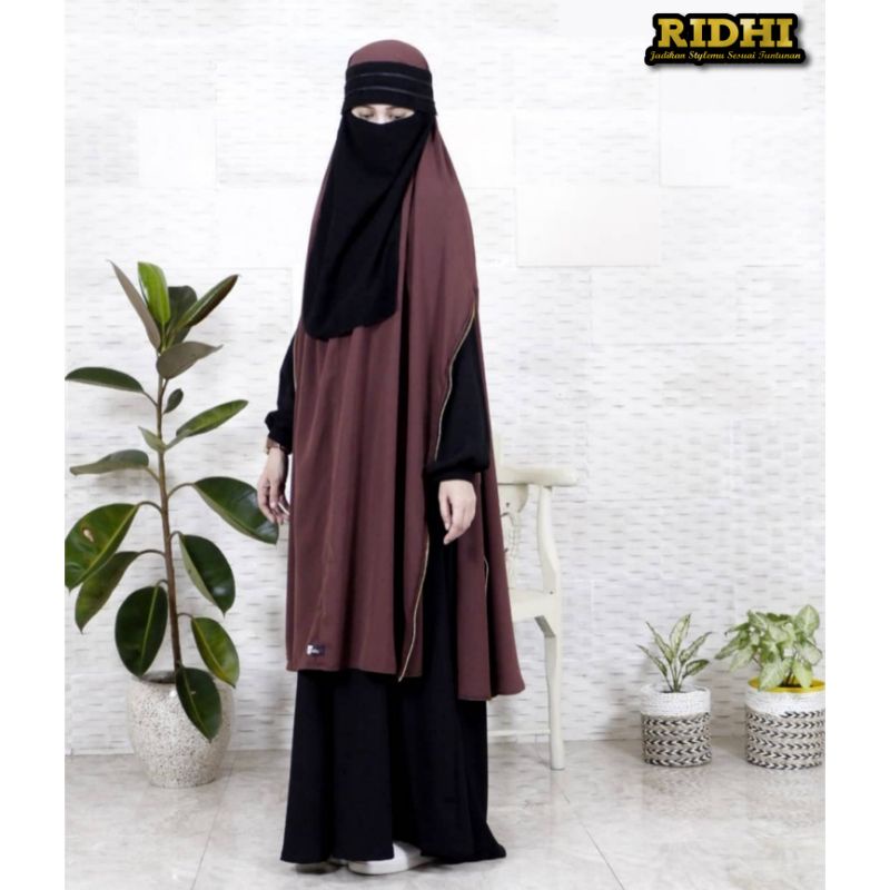 Kelebihan Khimar Jilbab long Super Jumbo Syari Khadijah Zipper Resleting Gold Handsplit lengan belah atau bolong 3 in 1 Jetblack Galeri Ridhi
