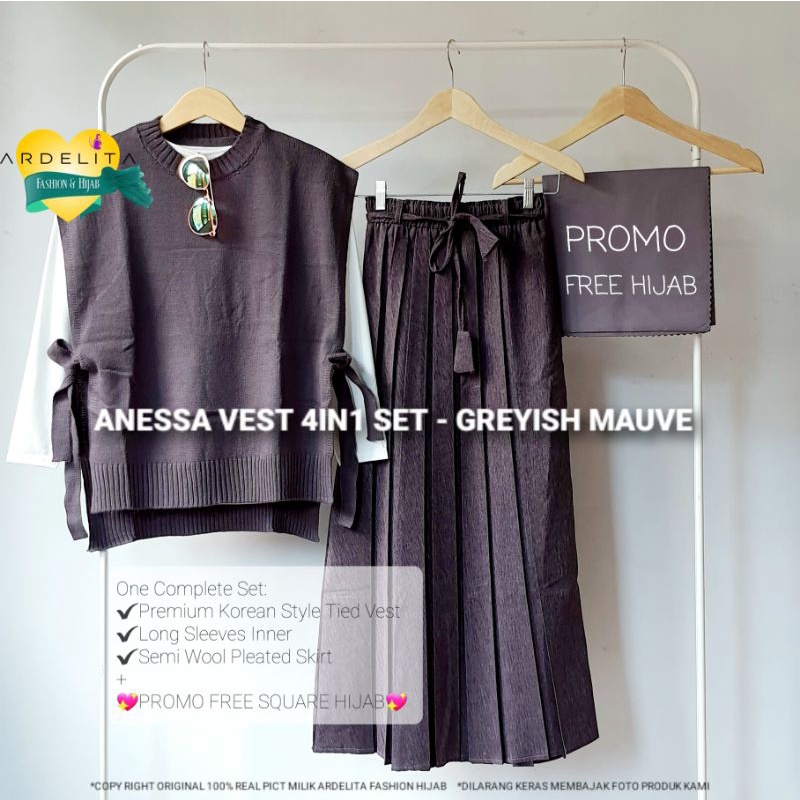 Tentang ANESSA 4IN1 PREMIUM SET / SETELAN OOTD WANITA HIJAB / SET ROK / BAJU VIRAL / OOTD SELEGRAM / BAJU BAGUS KEKINIAN / BAJU WANITA MURAH PREMIUM / SETELAN WANITA MUSLIM / OUTFIT WANITA KEKINIAN / BAJU LEBARAN WANITA REMAJA