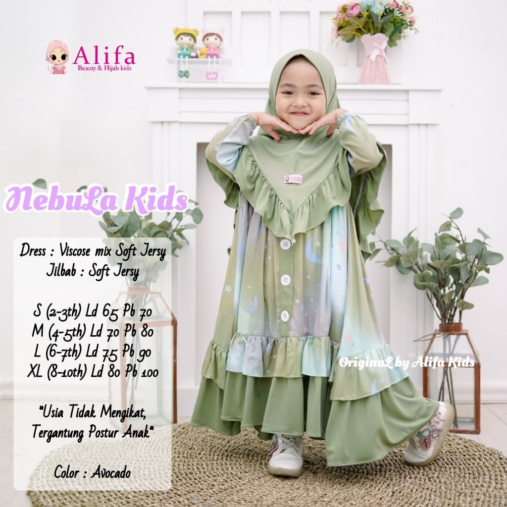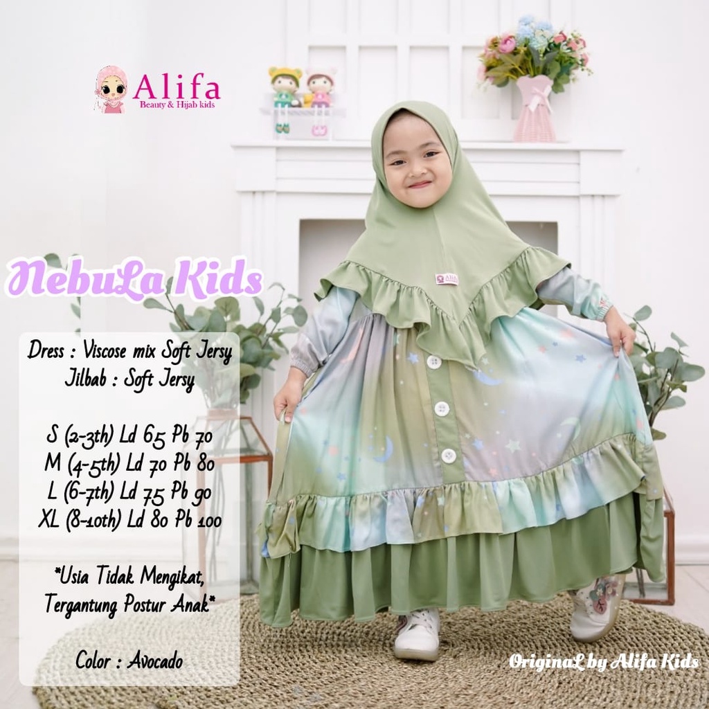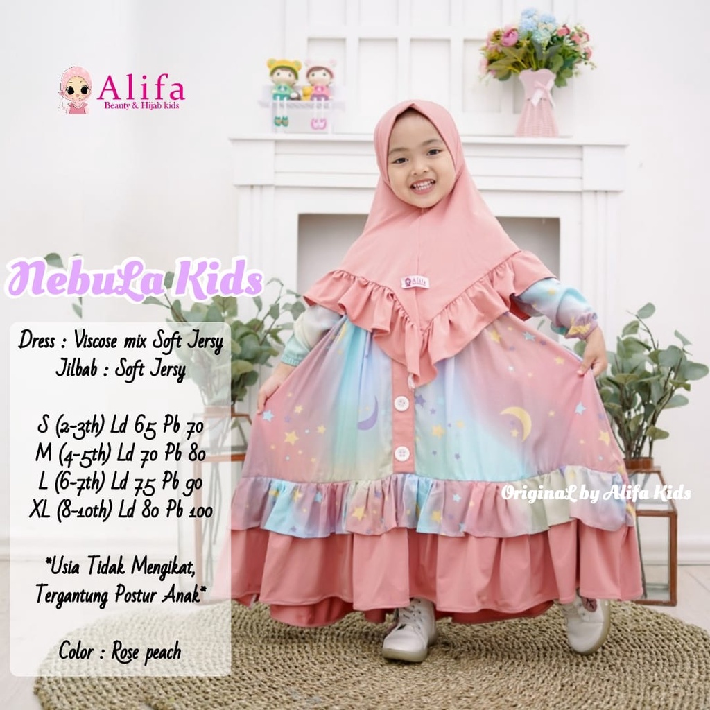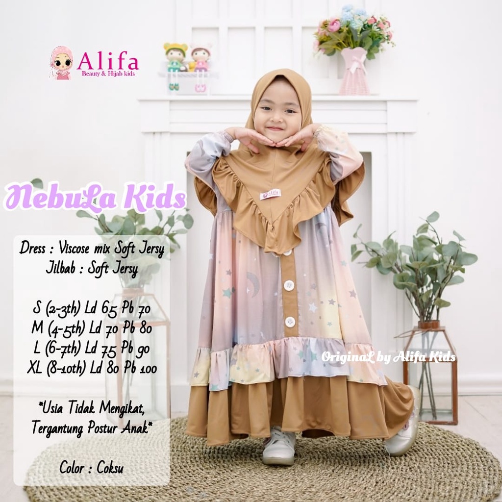 Nama Lengkap | NEBULA FASHION KIDS GALAXSY viscose mix soft jersy FREE HIJAB SYAR'I anak -anak 2-10thn LEBARAN OOTD STYLE |