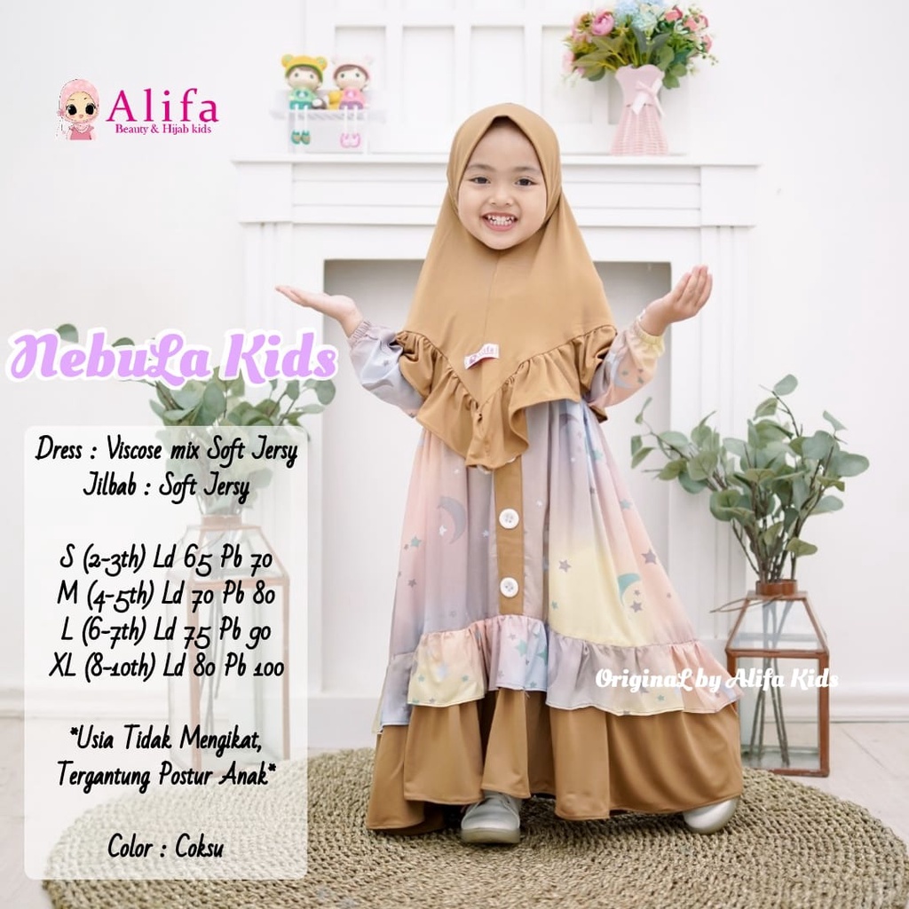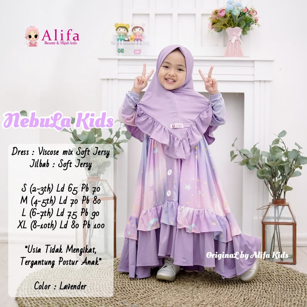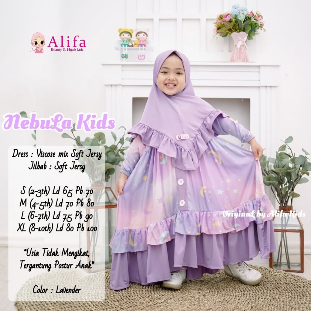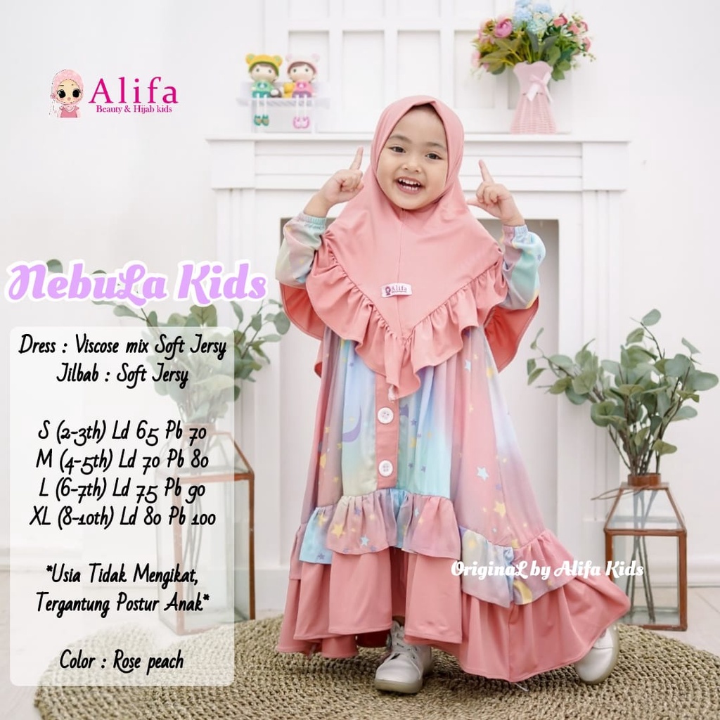 Nama Lengkap | NEBULA FASHION KIDS GALAXSY viscose mix soft jersy FREE HIJAB SYAR'I anak -anak 2-10thn LEBARAN OOTD STYLE |