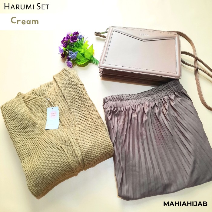 - Kelebihan dari Harumi one set Long Cardi Rajut + Rok Plisket KOREAN STYLE paket hemat OOTD HIJAB, SETELAN LENGKAP