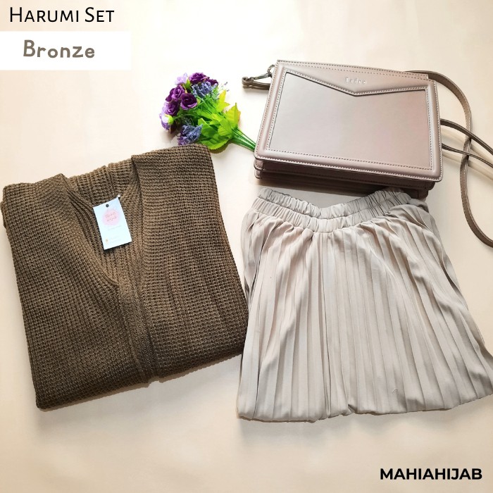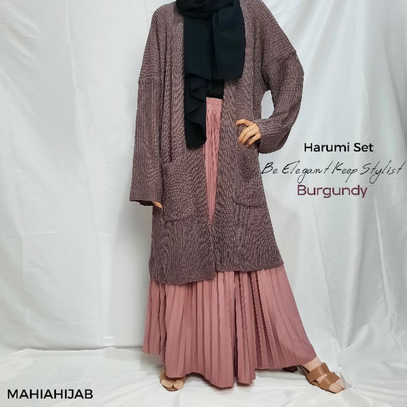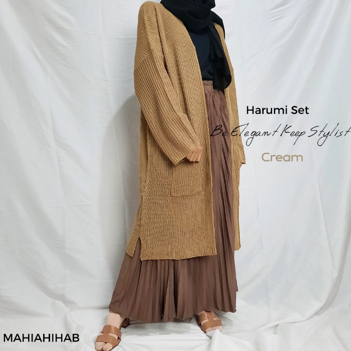 Kekurangan Harumi one set Long Cardi Rajut + Rok Plisket KOREAN STYLE paket hemat OOTD HIJAB, SETELAN LENGKAP