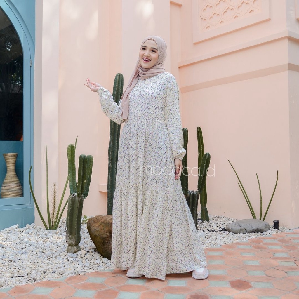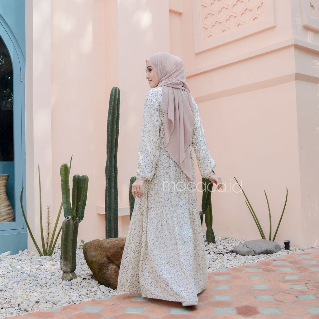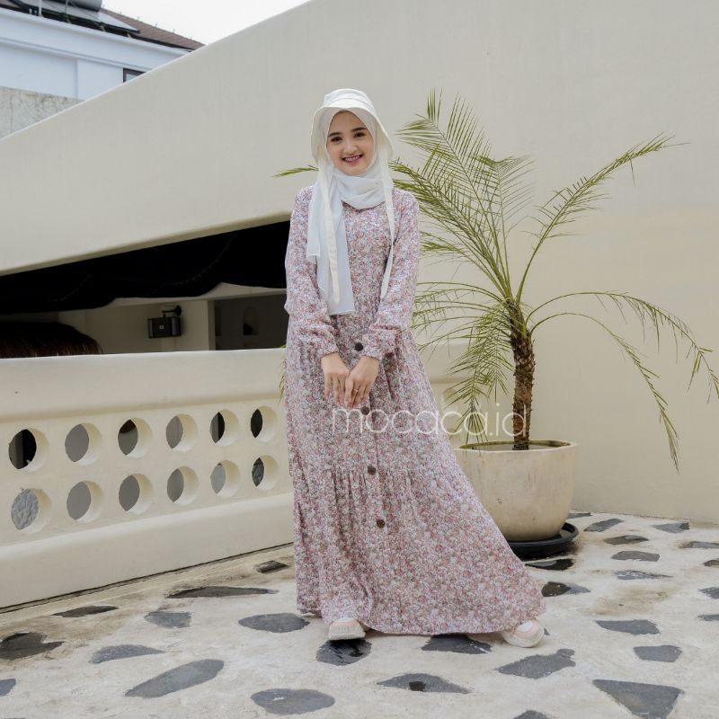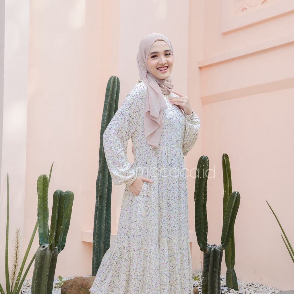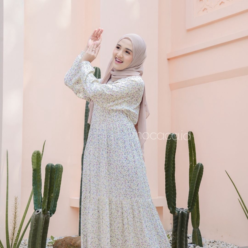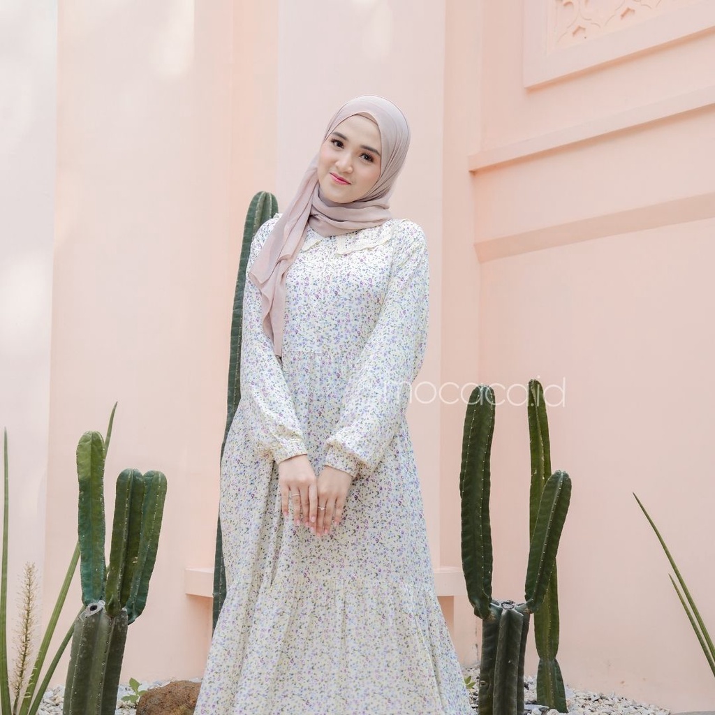Kekurangan Home Dress Rumahan OOTD Hijab motif Shabby Pastel Kuning Peach Rayon Premium busui Friendly Kerah Renda Collar lengan karet besar