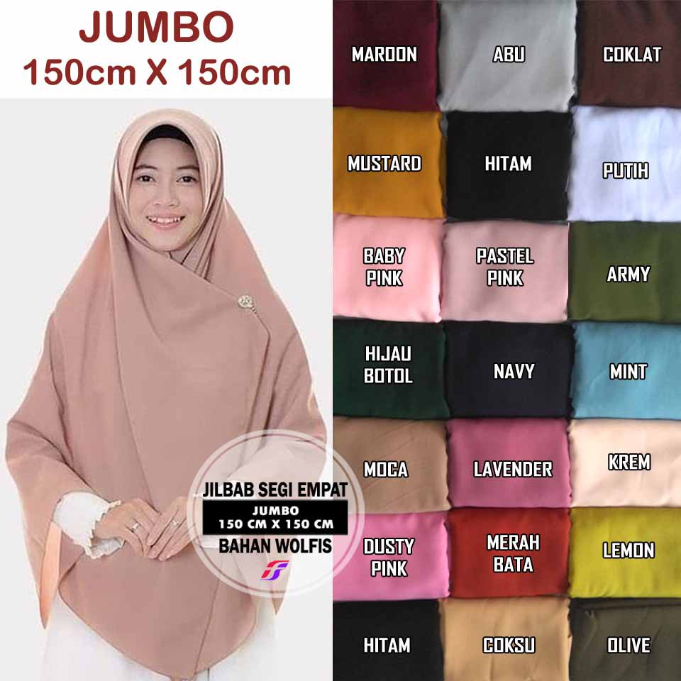 Apa itu Jilbab segi empat wolfis 150 X 150 / jilbab jumbo wolfis / jilbab syari wol