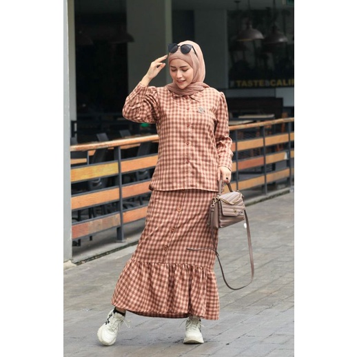 Nama Lengkap | nubia by mmaayra setelan kemeja dan rok bahan soft flanel ootd hijab |