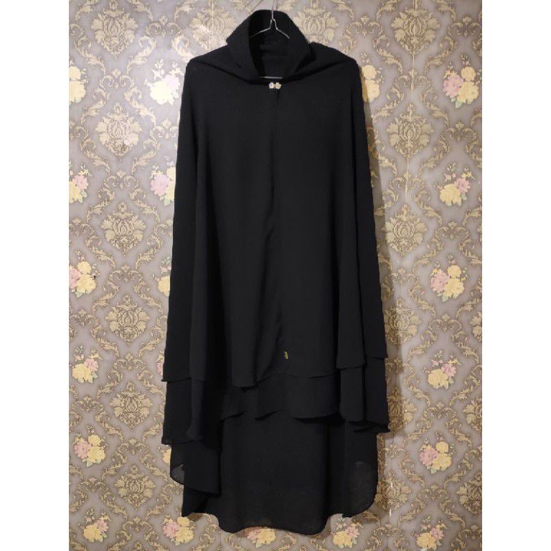 Khimar Jilbab long Super Jumbo Syari Khadijah Zipper Resleting Gold Handsplit lengan belah atau bolong 3 in 1 Jetblack Galeri Ridhi