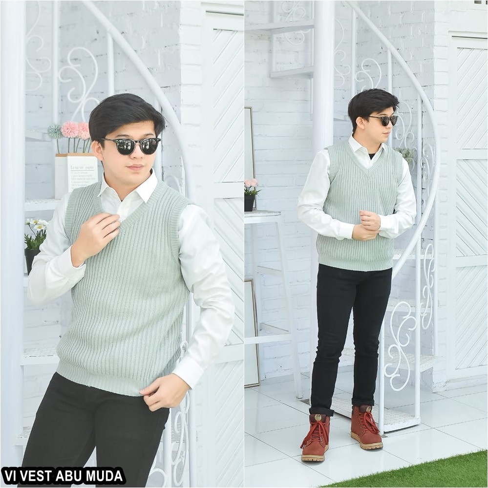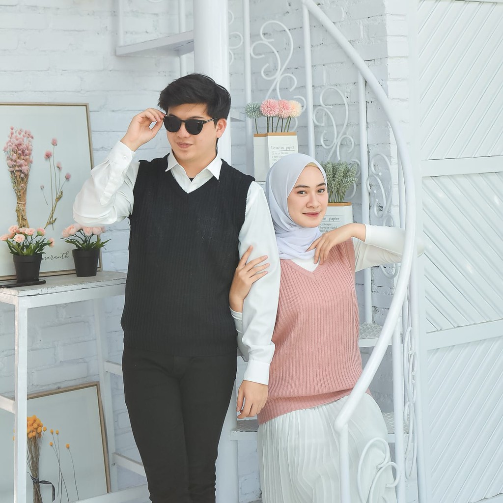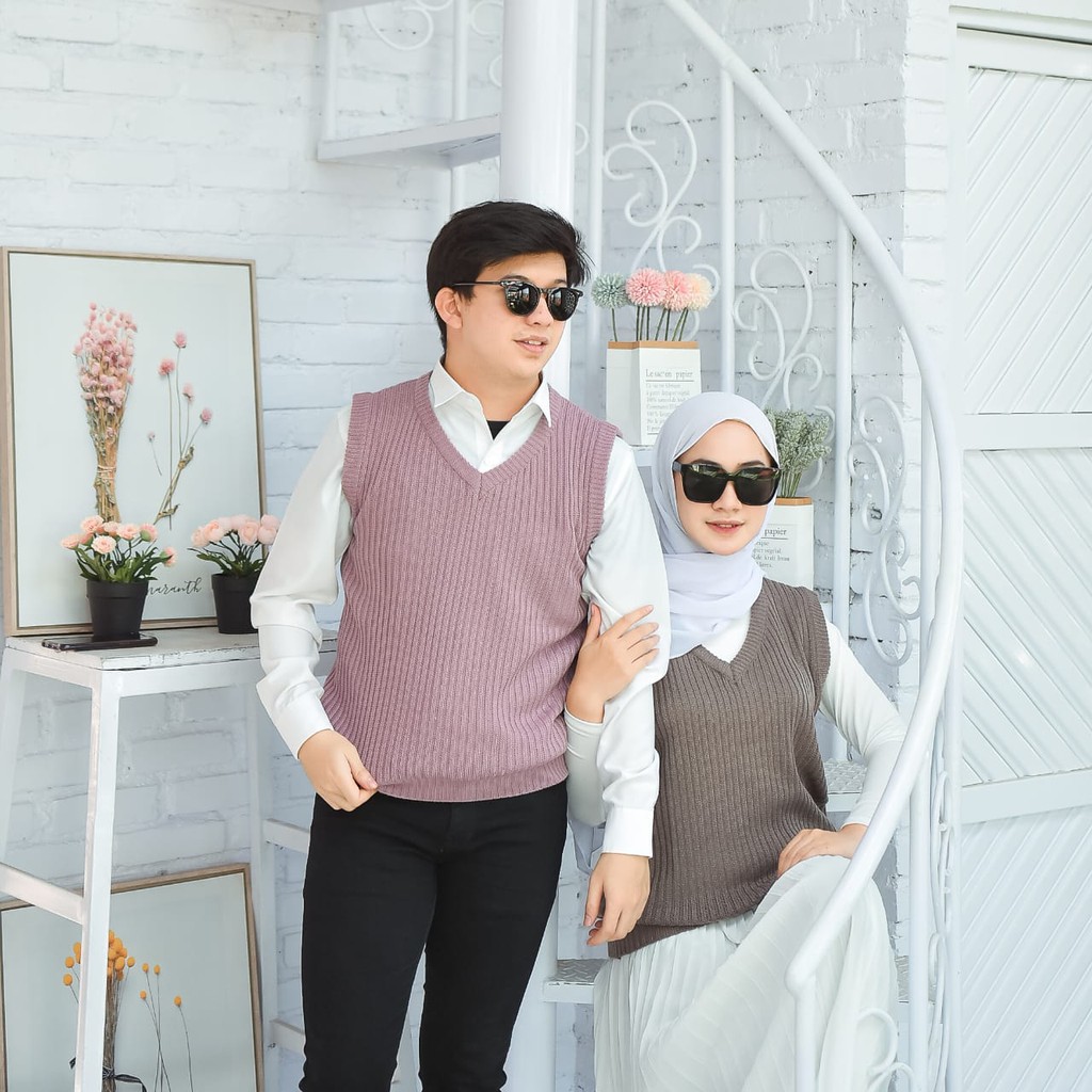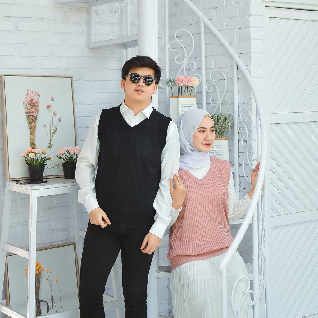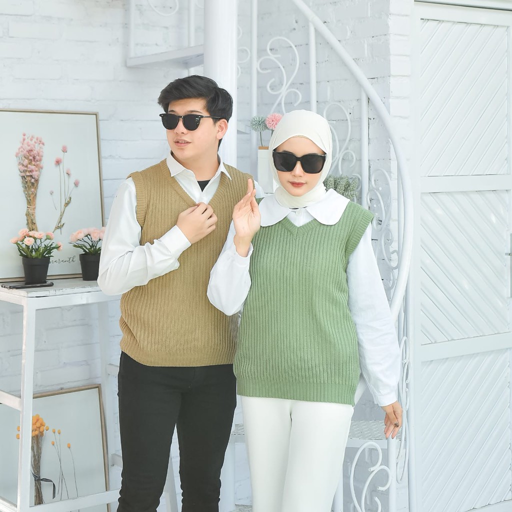 Membahas Rompi Rajut Wanita Pria Couple Unisex Polos VI VEST Outer Hijab Outfit Ootd Terbaru Kekinian