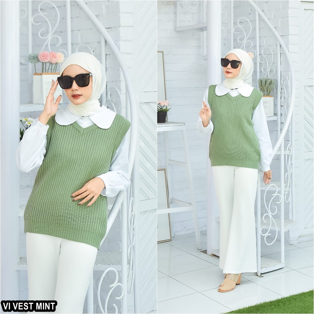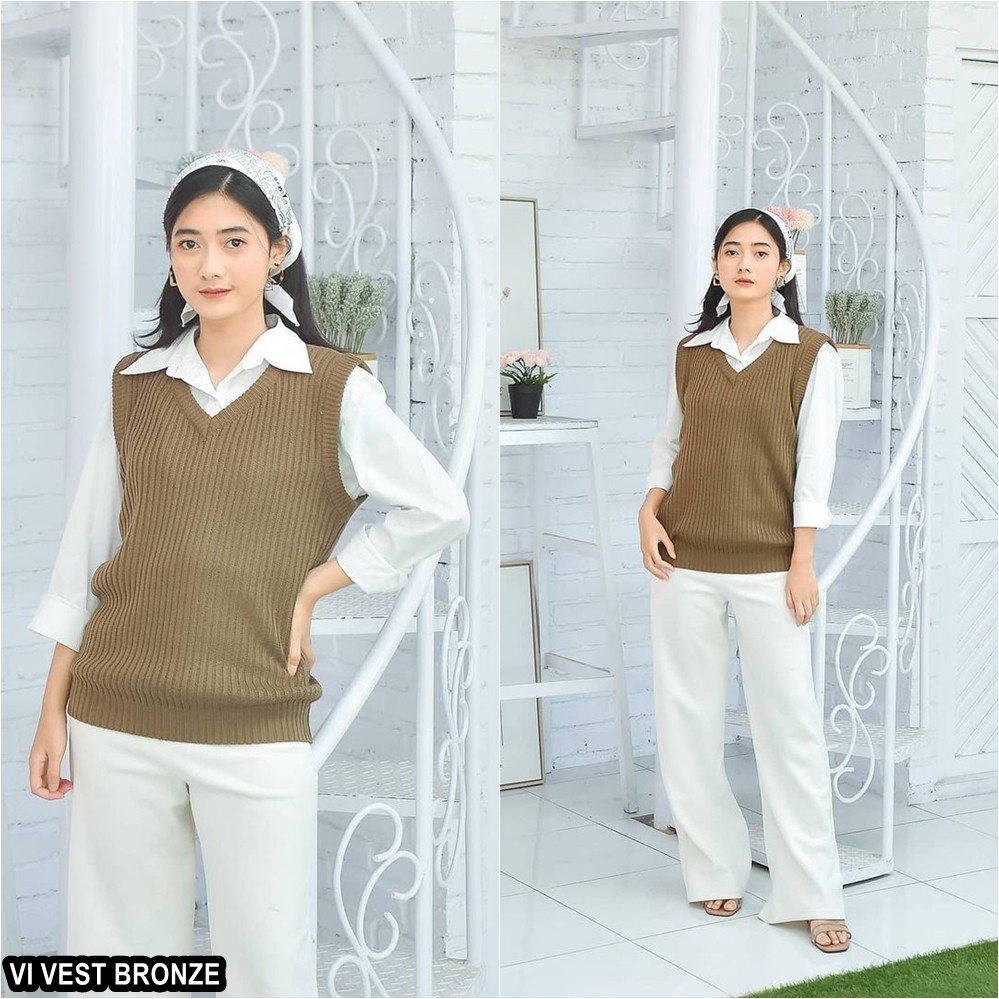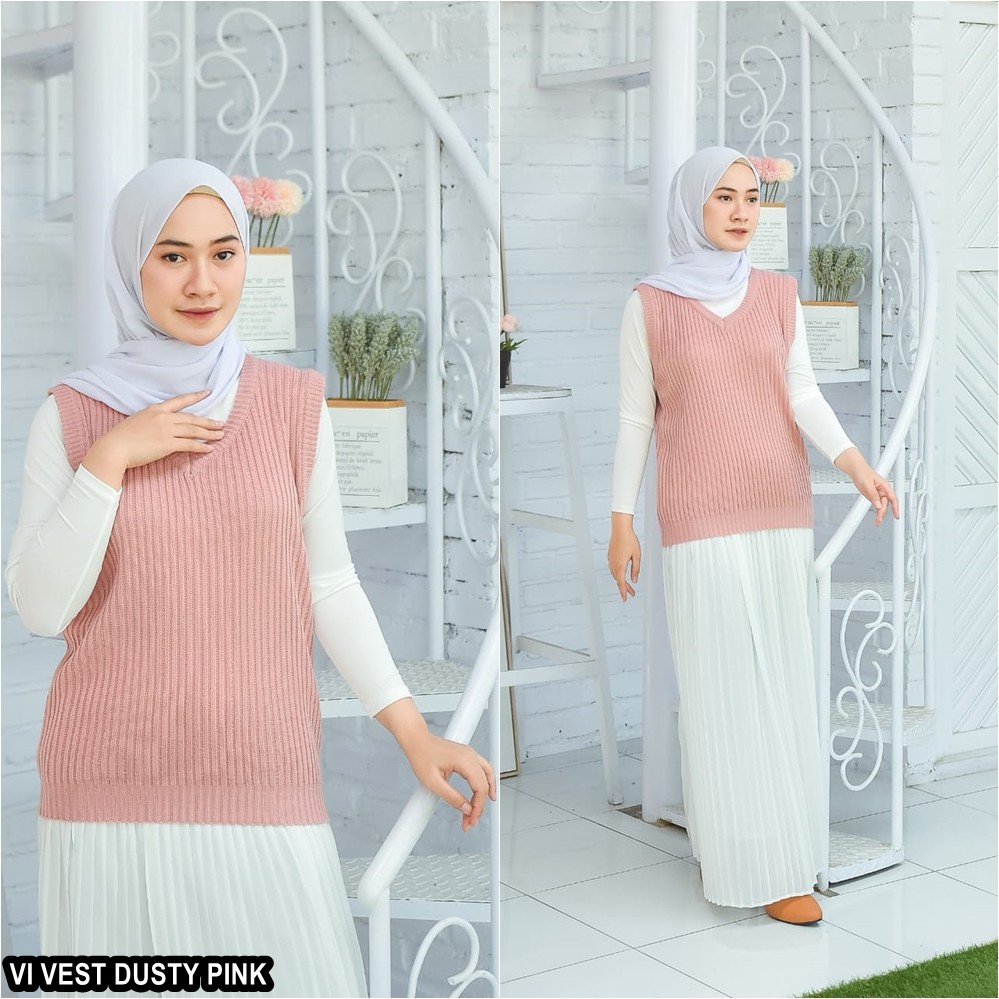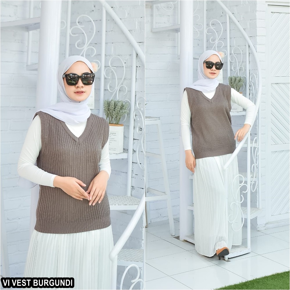 Kelebihan Rompi Rajut Wanita Pria Couple Unisex Polos VI VEST Outer Hijab Outfit Ootd Terbaru Kekinian