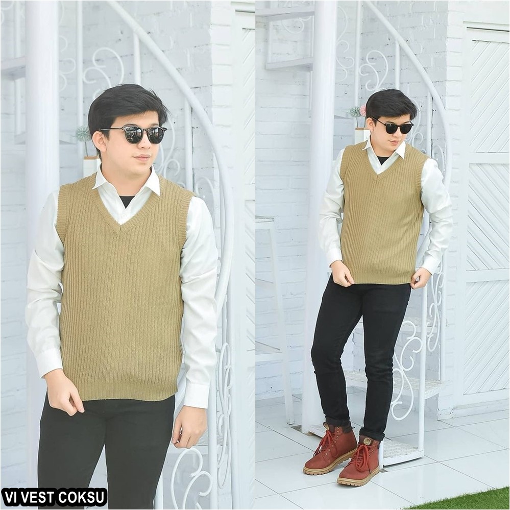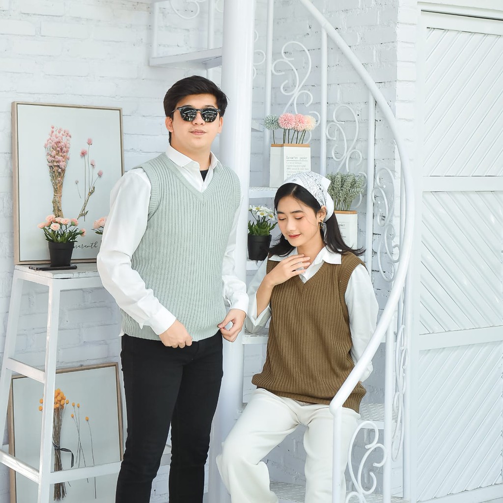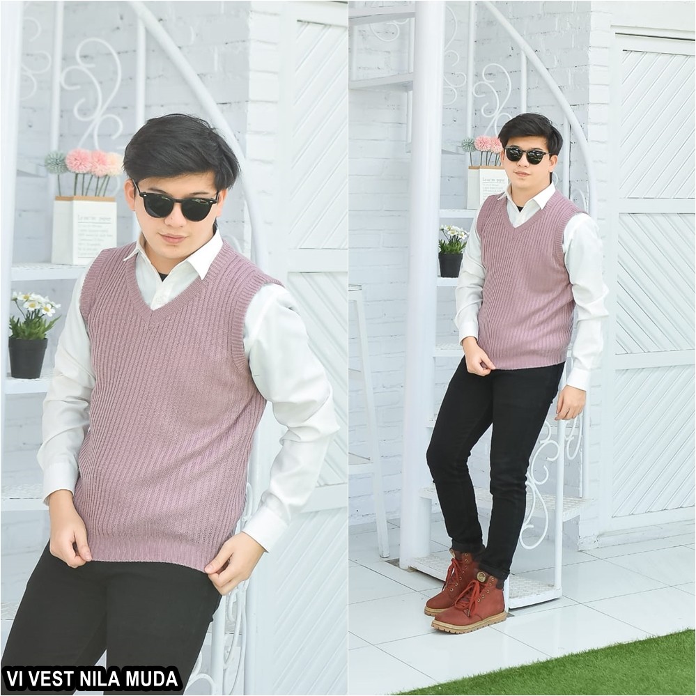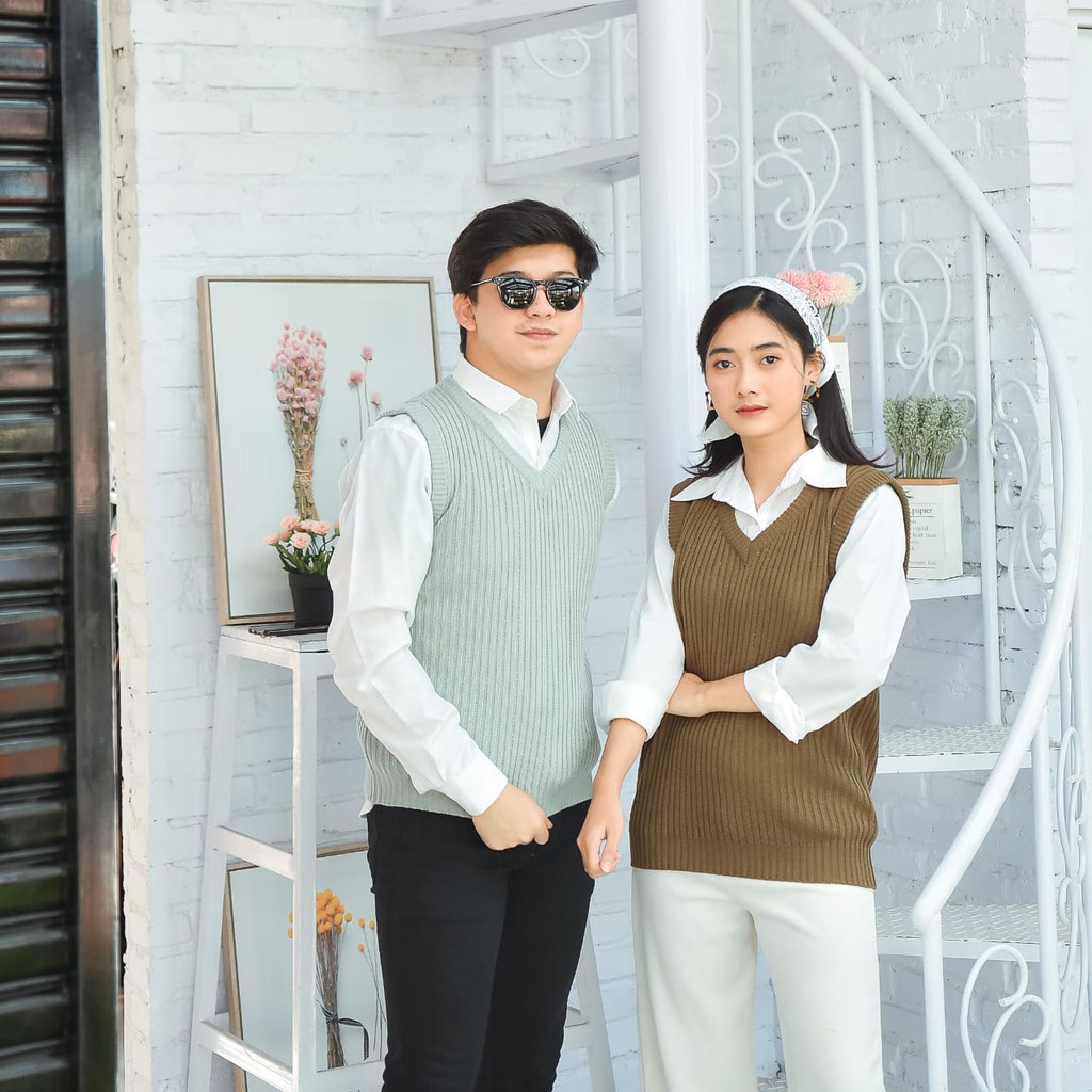 Kelebihan Rompi Rajut Wanita Pria Couple Unisex Polos VI VEST Outer Hijab Outfit Ootd Terbaru Kekinian