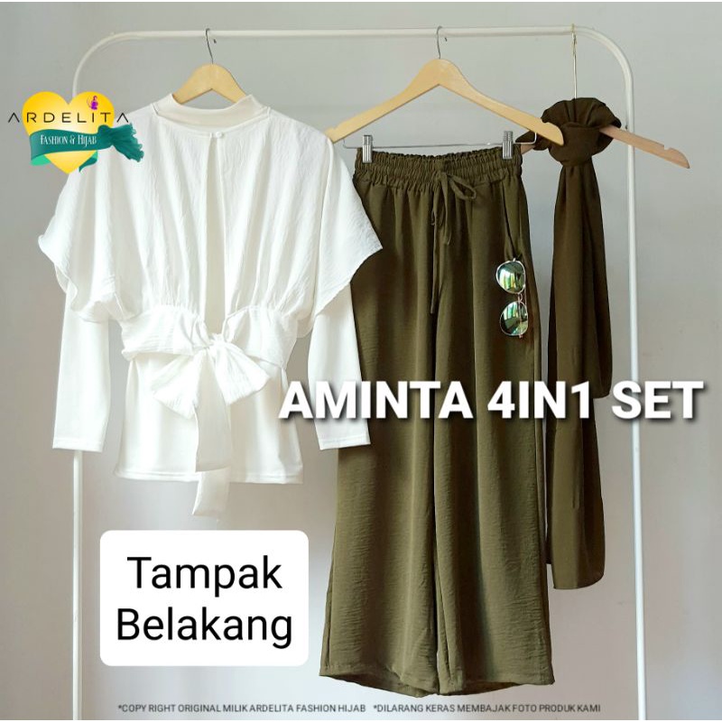PROMO GRATIS JILBAB - AMINTA 4IN1 SET SETELAN WANITA TERBARU OOTD HIJAB SELEGRAM KEKINIAN TERKEREN TERBAIK BAJU WANITA MURAH BAGUS PREMIUM UNTUK LEBARAN 2022 SETCEL MEWAH NYAMAN DIPAKAI