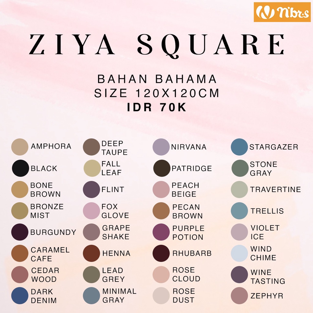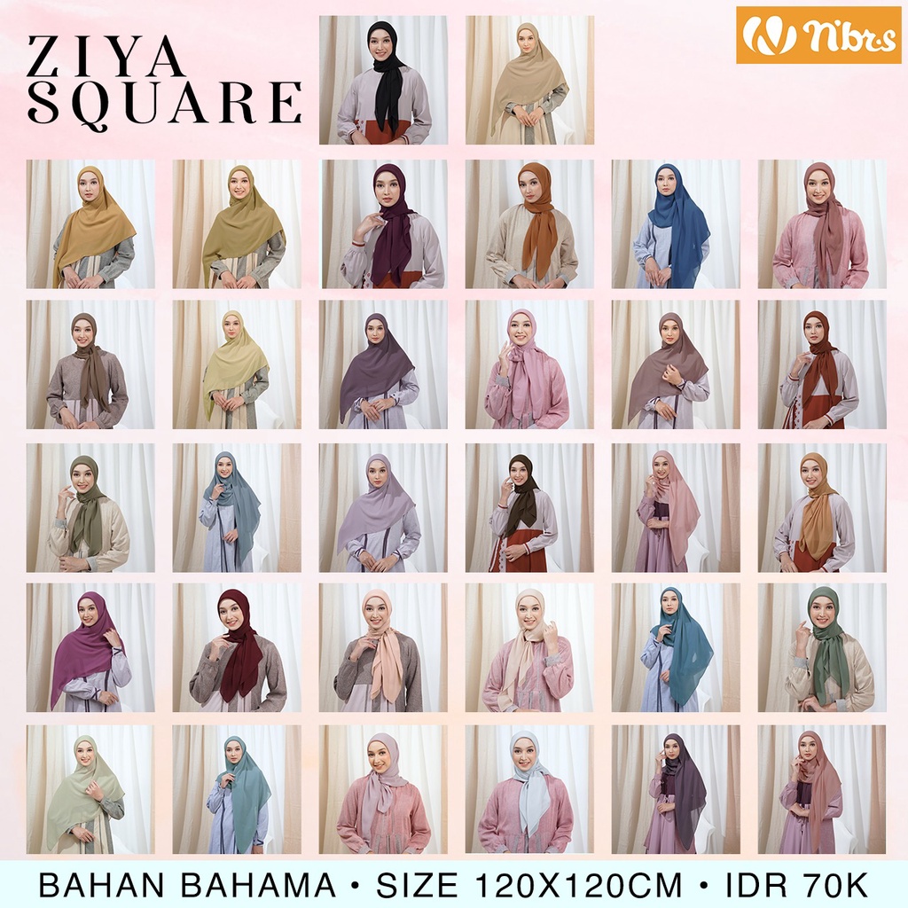 Nama Lengkap | Nibras Hijab ZIYA SQUARE Bahan Bahama Kerudung Segi Empat Polos Syar'i Muslim OOTD |