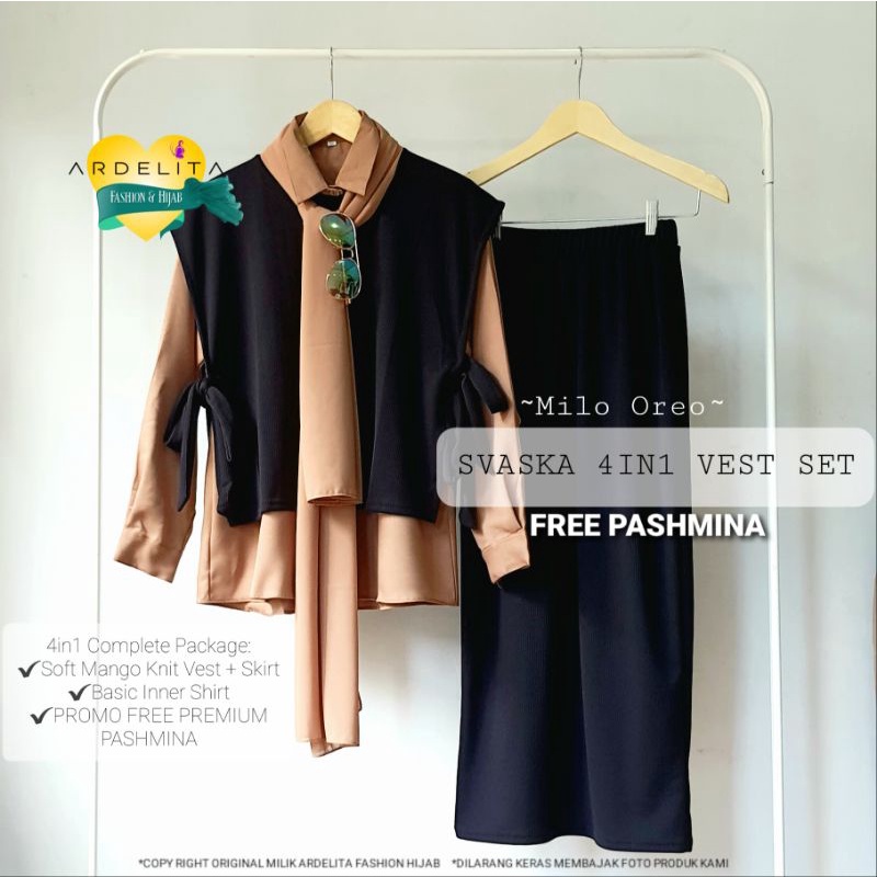 Kelebihan NEW SET ORI REAL PICT SVASKA OOTD LENGKAP FREE HIJAB/BAJU SET SELEGRAM/SETELAN VEST ROK SPAN PANJANG