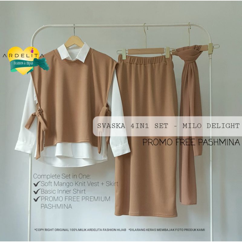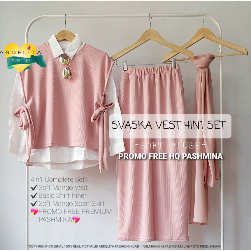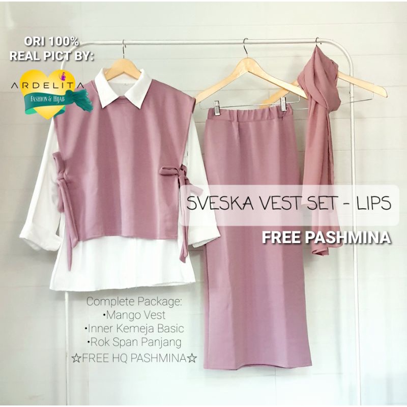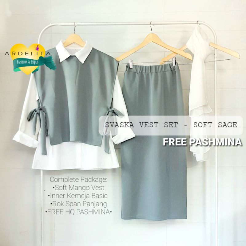- Kelebihan dari NEW SET ORI REAL PICT SVASKA OOTD LENGKAP FREE HIJAB/BAJU SET SELEGRAM/SETELAN VEST ROK SPAN PANJANG