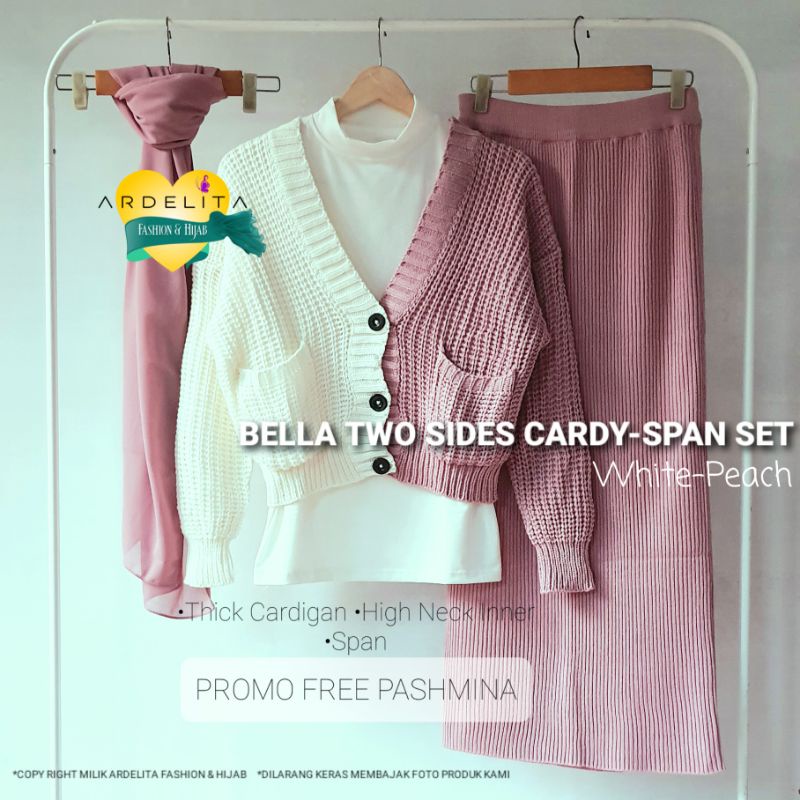 SATU SET HEMAT LENGKAP BELLA CARDY 2 SIDE SPAN RAJUT/OOTD HIJAB SELEGRAM SETELAN ROK WANITA