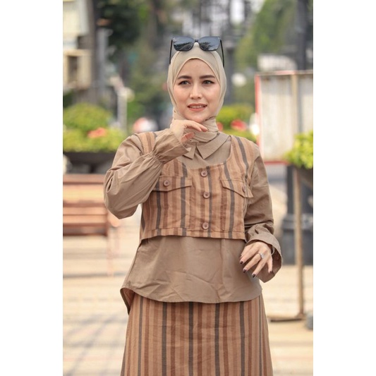 Nama Lengkap | saba by mmaayra setelan atasan dan rok model kemeja rompi ootd hijab baju kantor baju kerja casual jalan jalan baju terbaru |